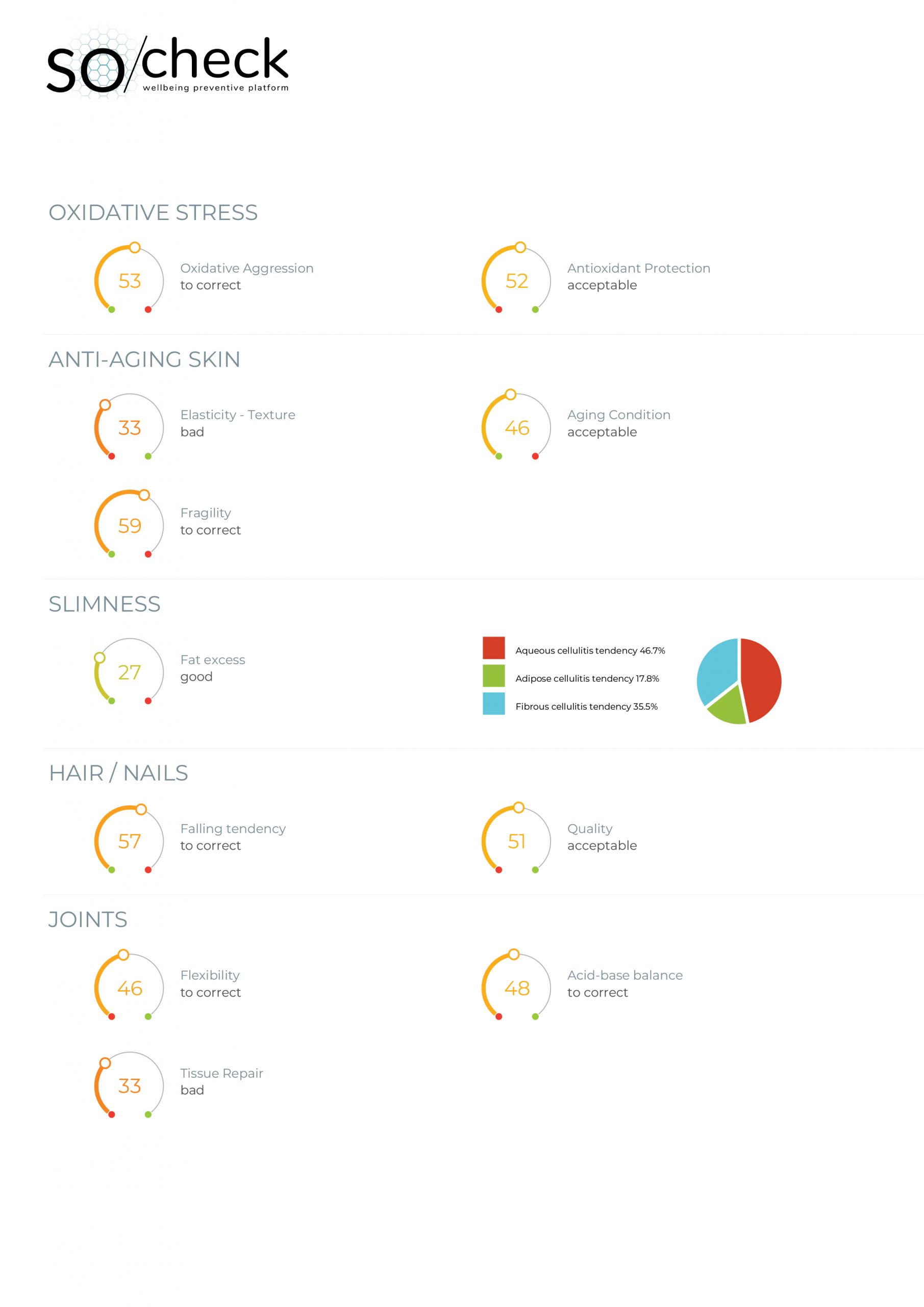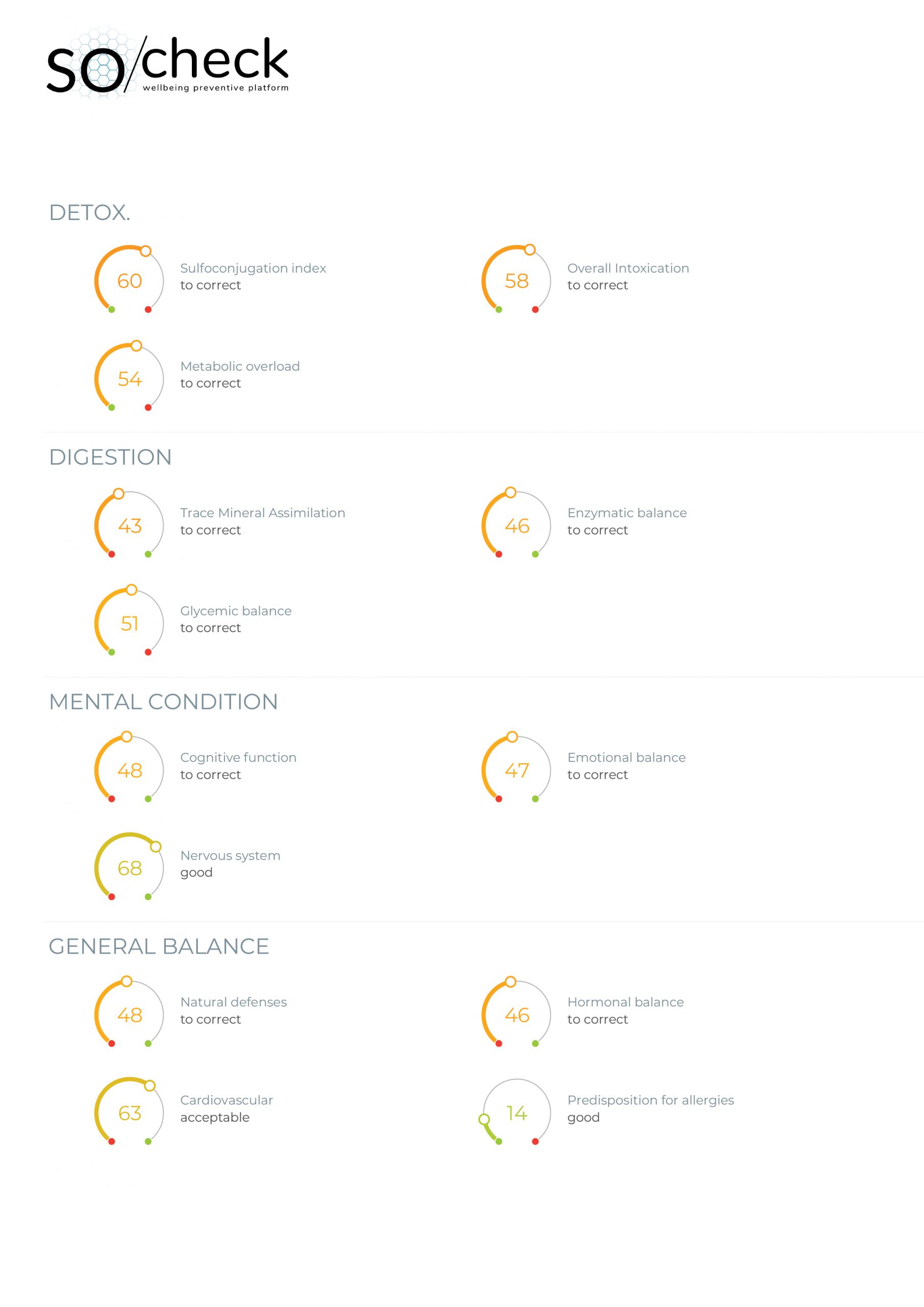 Ta meritev nam omogoča, da pripravimo najučinkovitejši program izboljšanja zdravja za vsakega posameznika. Le ta vključuje način prehrane, diete, življenjski slog, programe razstrupljanja in ustreznih dodatkov, če je potrebno.